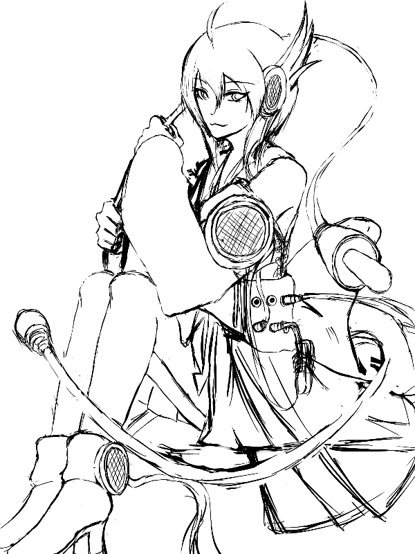 一応上半身の服は着物みたいものを着ている。.hack//CELLの碧ってキャラの服装をパクった感じ。